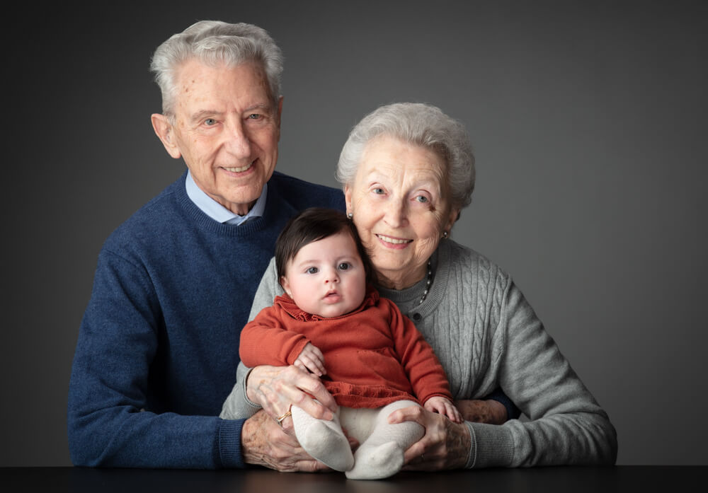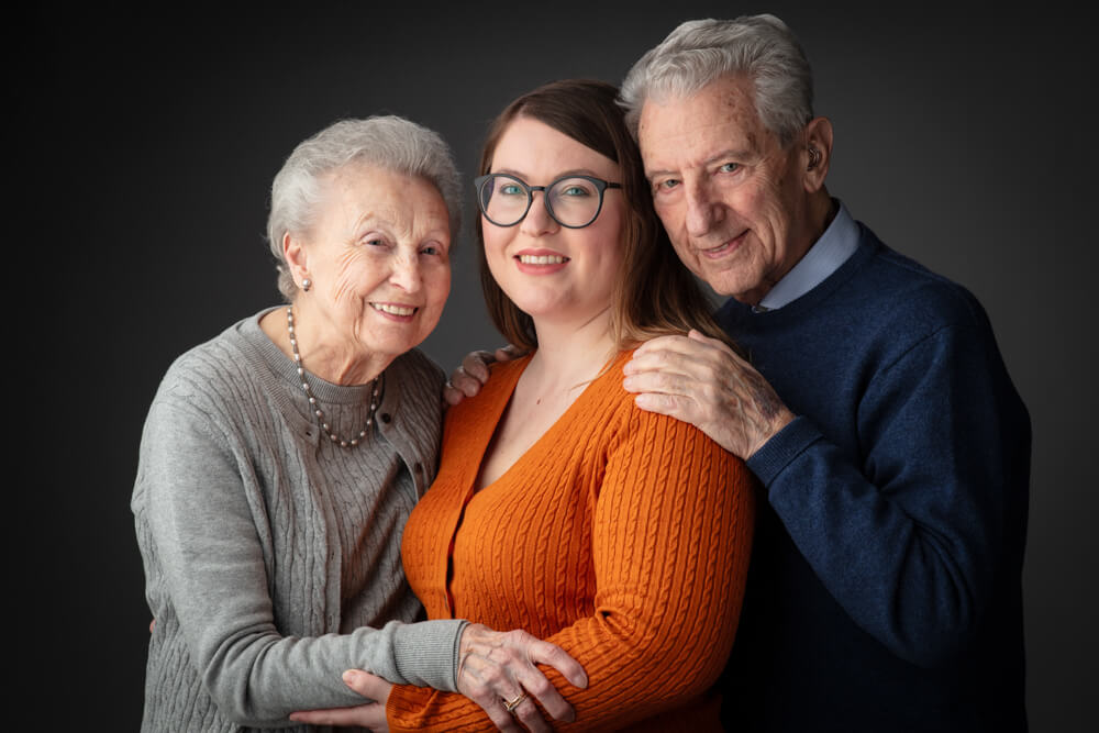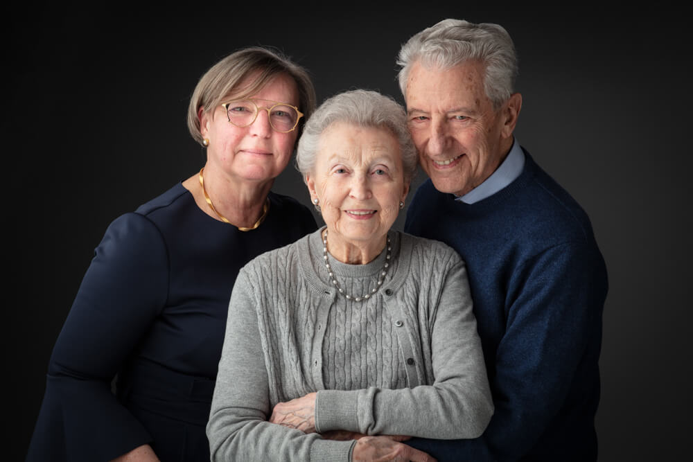 Zij wilden echter graag nog een stapje verder gaan. Dus we zochten en vonden een leuke manier om zelfs zeven generaties samen te brengen. Door oude portretten van overleden grootmoeders toe te voegen, slaagden we erin om van elke vrouw op de foto ook haar grootmoeder zichtbaar te maken. Zeven vrouwen, zeven generaties, verbonden op één beeld.